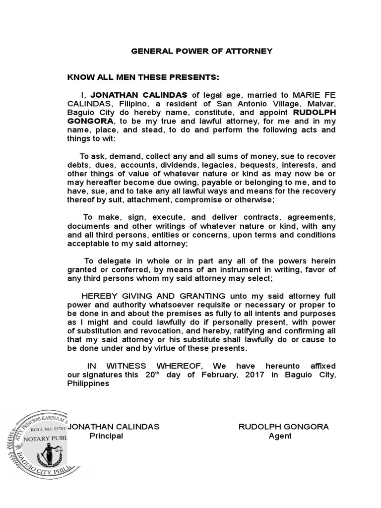 General Power Of Attorney Power Of Attorney Private Law from imgv2-2-f.scribdassets.com Maybe you would like to learn more about one of these? We did not find results for: Check spelling or type a new query. General power of attorney sample philippines.